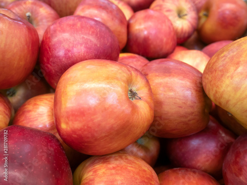 Ripe red garden seasonal apples. Selling ripe apples in the store.