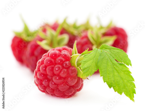 Ripe red raspberries.