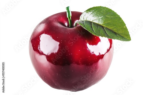 ripe red with glossy finish and green leaf attached isolated on transparent background