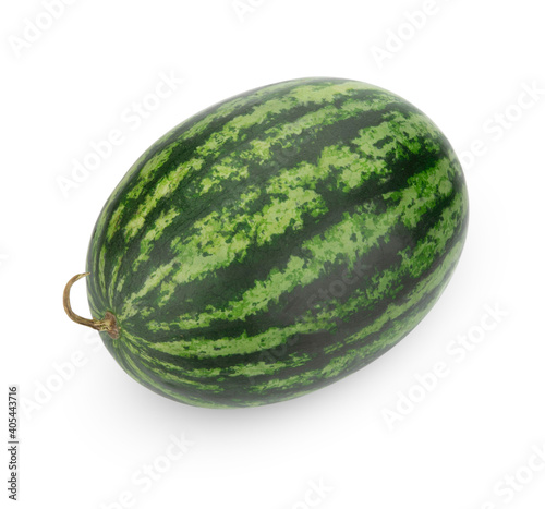 Ripe single full watermelon isolated on white background. One whole watermelon with clipping path