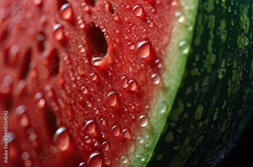 Ripe watermelon with water drops on it close-up. Watermelon texture.