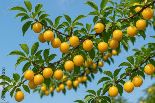 Ripened Yellow Fruits on Prunus Cerasifera Tree Branches