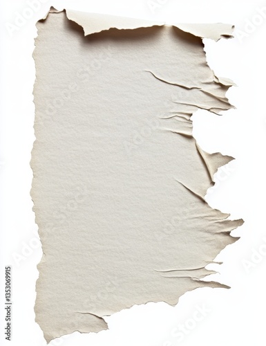 Ripped off beige paper, isolated on white background. Possible use texture, design element