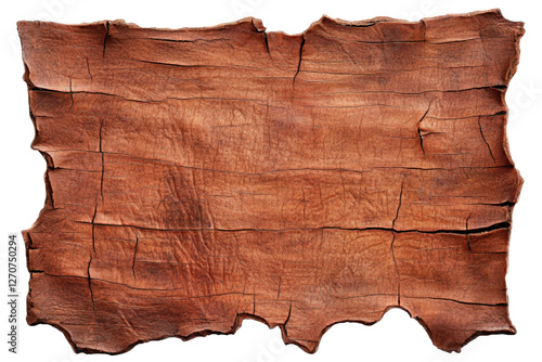 Ripped torn concept. A textured brown leather piece, perfect for backgrounds or artistic projects.