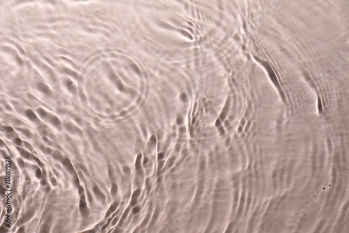 Rippled surface of clear water on beige background, top view
