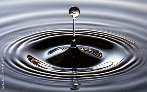 Rippling water surface captured as a drop creates concentric circles in a serene setting with reflections
