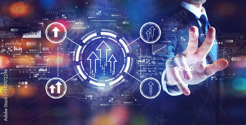 Rising arrow theme with businessman on night city background