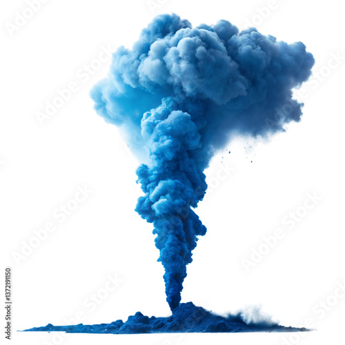 Rising Dense Cloud of Blue Smoke on transparent background Isolated Plume, Abstract Form