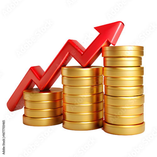 Rising Gold Stacks: 3D Render of Upward Trending Financial Growth and Success