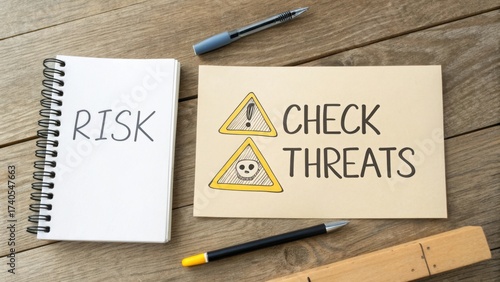Risk Assessment and Management with Warning Signs on a Wooden Surface for Safety and Security Context