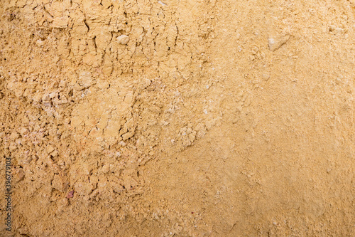 River sand, flat surface of yellow quartz wet sand in a quarry.
