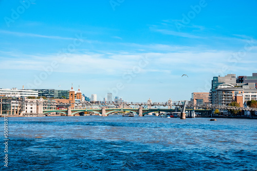 River Thames in London with beautiful scenery around on a warm summer day. Beautiful London view.