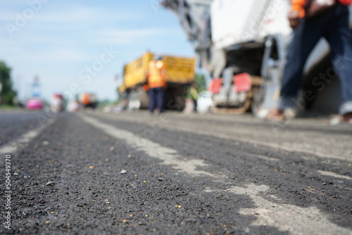 Road construction blur By heavy machinery