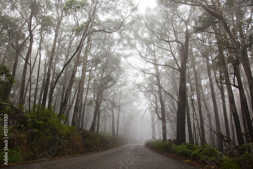 Road in misty forest