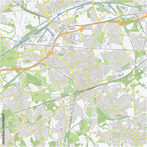 Road map of Gelsenkirchen in Germany. Contains layered vector with roads water, parks, etc.