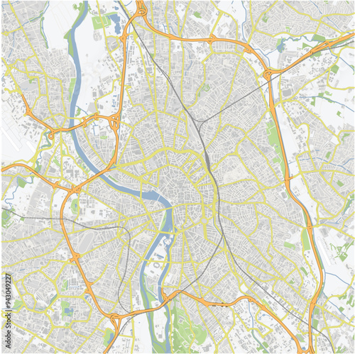 Road map of Toulouse in France. Contains layered vector with roads water, parks, etc.