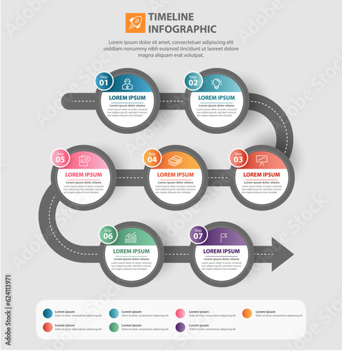 Road map steps, Infographic design template and marketing icons, with 7 options, parts, steps or processes,Business concept