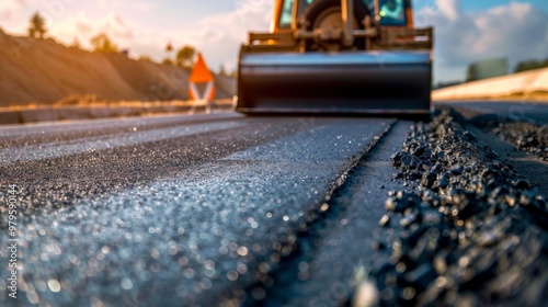 road roller on a pavement road