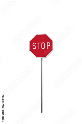 Road sign stop, front view. On isolated transparent background.