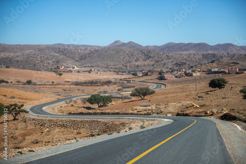 Road through the rural desert area in Morocco.