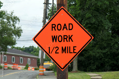 ROAD WORK sign informing drivers that work zone begins in 1/2 mile