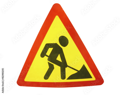 Road works sign for construction works in street