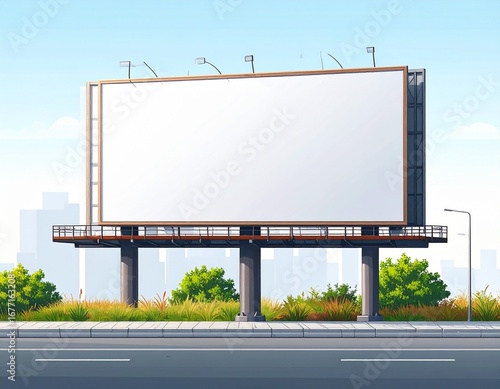 Roadside advertising concept with a blank outdoor billboard for marketing messages on a highway with traffic
