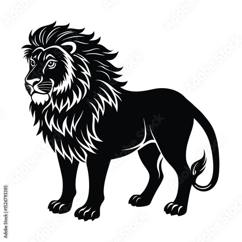 Roaring Lion Silhouette with Detailed Mane in Aggressive Stance on White Background ,ai generator