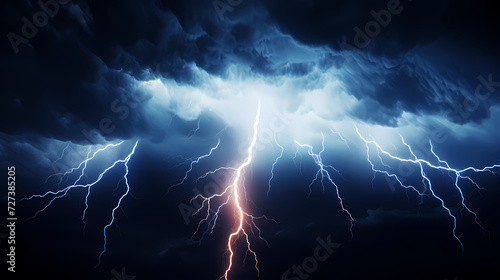 Roaring thunderstorm, shocking lightning shines in the dark sky