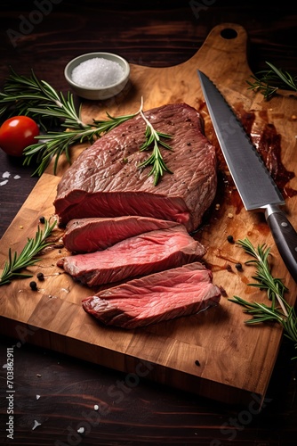 Roast Beef Slices on Wooden Board: Culinary Delight