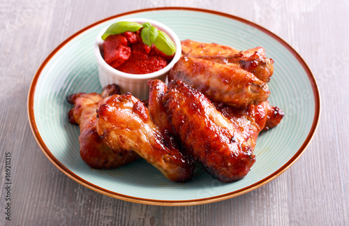 Roast chicken wings and tomato sauce