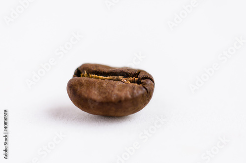 Roasted coffee bean closeup on white background