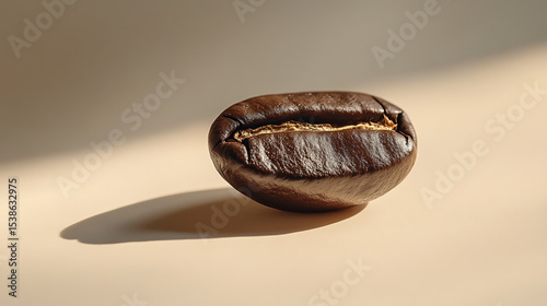 Roasted Coffee Bean on Warm Neutral Background with Smooth Shadows
