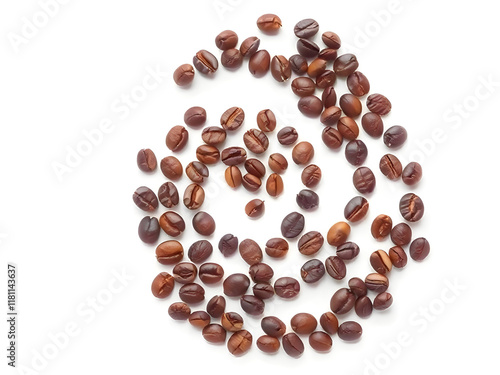 Roasted Coffee Beans Arranged in a Swirl Pattern on White Background