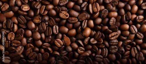 Roasted coffee beans backdrop with space for text. Copy space image. Place for adding text and design