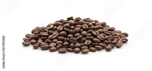 Roasted coffee beans pile, isolated background, food product, drink ingredient
