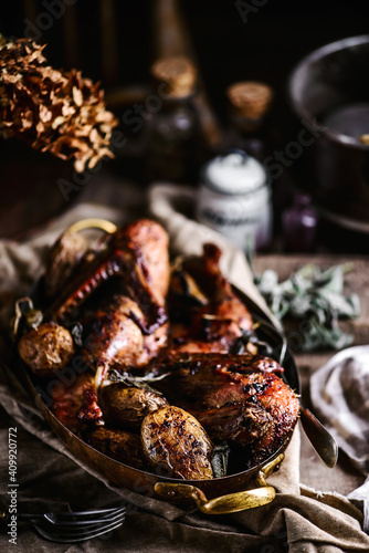 Roasted duck with potatoes..style vintage