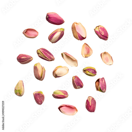 Roasted pistachios falling on black background healthy snack food