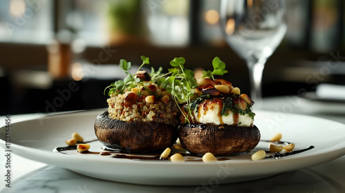 Roasted Stuffed Portobello with Quinoa and Goat Cheese, Vegetarian Main Photography