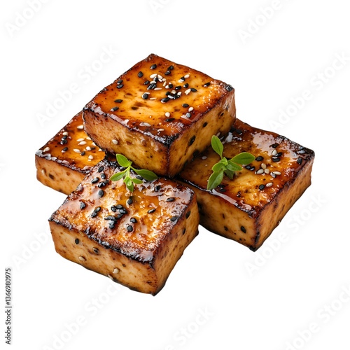 Roasted Tofu with Miso Glaze Isolated on Transparent Background