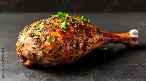 Roasted Turkey Leg With Parsley Garnish.