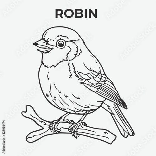Robin bird Detailed Outline for Artistic Coloring. Vector Illustration
