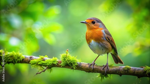 Robin perched on a tree branch in a lush green forest , wildlife, nature, bird, songbird, feathers, small, cute, outdoors