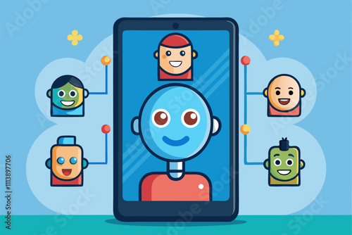 Robot artificial intelligence face recognition vector illustration