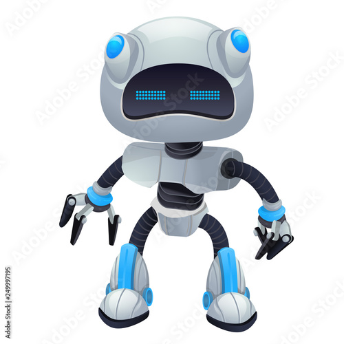 Robot cartoon character 3d mascot with emotions, technology, cute isolated on white background.