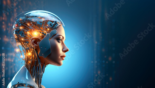 Robot Girl closeup, futuristic concept of modern technology progression. Generated with AI