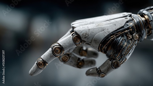 Robot hand touching legal compliance interface, emphasizing standards, governance strategies, innovation, and adaptability within digital frameworks