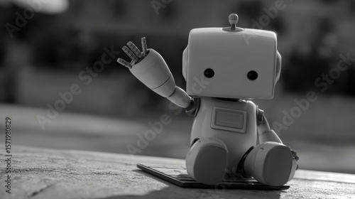 Robot sitting on a ledge as a representation of an ai startup pitch assistant concept for innovative solutions