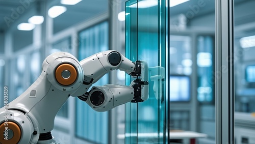 Robotic Arm Engaging Glass Panel in Modern Manufacturing