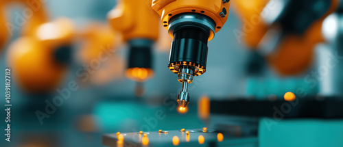 Robotic arms operating independently in smart factory, showcasing advanced automation technology and precision in manufacturing processes